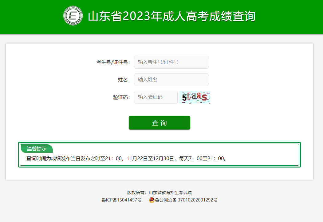 山东省2023年成人高等学校招生全国统一考试成绩查询